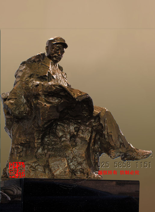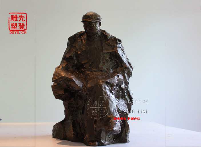 這是一尊寫(xiě)意的雕像,遠(yuǎn)遠(yuǎn)望去,從輪廓大致便可以看出這是一座劉伯承先生的坐像。先生安詳?shù)刈帜靡环輬?bào)紙,在一天的伊始靜靜的讀著。他像一位為兒孫讀報(bào)的老人,如此安詳,慢慢地念著報(bào)紙的內(nèi)容,不時(shí)又有停頓,思索了一會(huì),閉上眼,靜靜的思考,然后又堅(jiān)定地點(diǎn)了點(diǎn)頭,仿佛已有所定斷。這也許不是一份普通的晨報(bào),也許是從資料室中搜索出來(lái)的解放南京前地下工作者在當(dāng)時(shí)緊急情況下做出的報(bào)告,經(jīng)過(guò)解放南京戰(zhàn)爭(zhēng)的洗禮,已經(jīng)有些皺了。這是個(gè)百?gòu)U待興的歷史時(shí)刻,南京市的蔣軍殘余還沒(méi)有肅清,城市還沒(méi)有安定,生產(chǎn)建設(shè)沒(méi)有恢復(fù),人們的生活沒(méi)有正常,作為新中國(guó)南京市第一任市長(zhǎng),劉伯承先生要做的還很多。